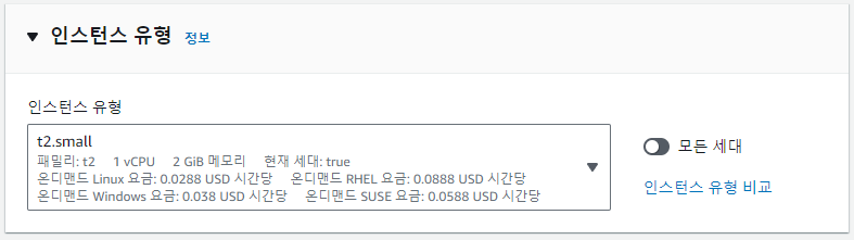 인스턴스 유형 선택