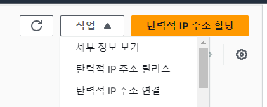 탄력적 IP 를 할당 받고, 우측 상단 작업탭에서 탄력적 IP 주소 연결을 클릭한다.